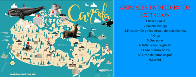 - Mapa con los animales en peligro de extinción.