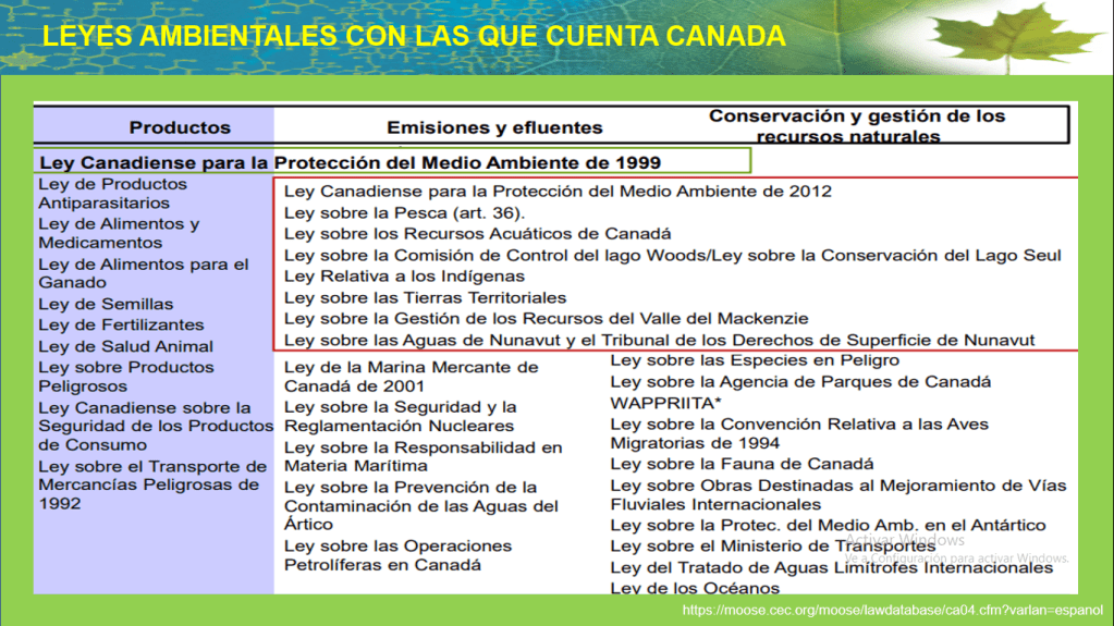 - LEYES AMBIENTALES CON LAS QUE CUENTA CANADÁ
